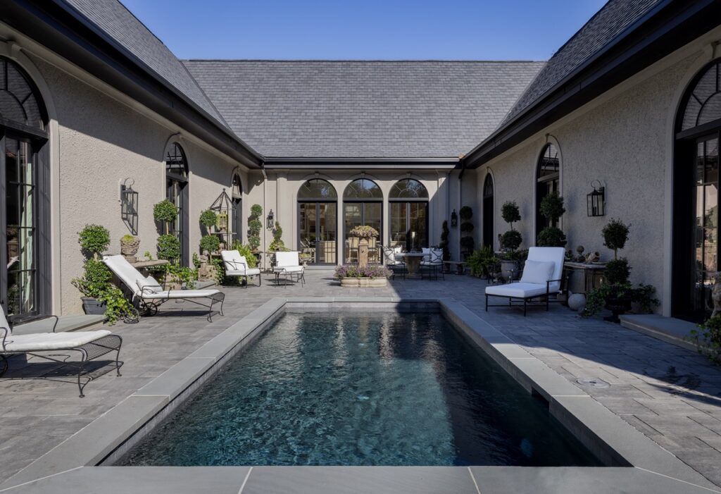 Who says luxury and sustainability can’t coexist? We recently completed this extraordinary net-zero French Country estate in Connecticut—a true marriage of elegance and innovation. Spanning 6,300 square feet, the home features 12-foot ceilings, four bedrooms, four and a half baths, and a collection of beautifully designed living spaces, including private offices and a sunlit courtyard with a pool that feels like a private resort.